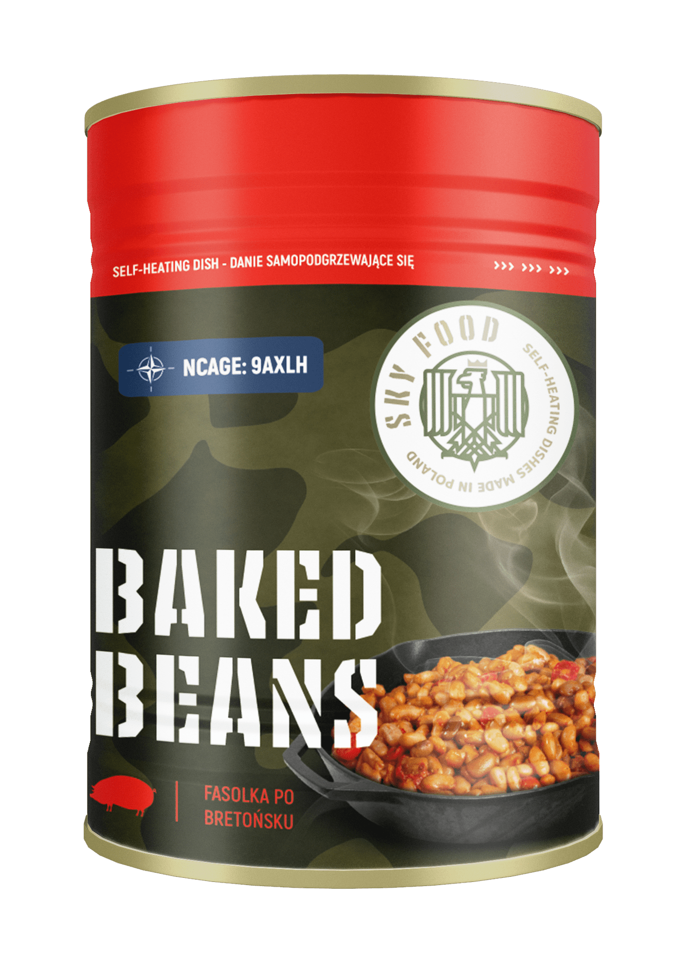water, beans (13%), smoked cooked sausage – 6.5% (pork meat (65%), water, beef meat (9%), potato starch, pork fat, table salt, soy protein, stabilizer: E 451; dried garlic, spices, flavor enhancer: E621; antioxidant: sodium ascorbate; acidity regulators: sodium acetates, E575; pork protein, preservative: E250), smoked cooked ham – 6.5% (pork meat (61%), water, table salt, pork protein, soy protein, wheat fiber, stabilizer: E 451; spices, spice extracts, glucose, maltodextrin, flavor enhancer: E 621; thickening agents: E 407a, E 415; antioxidant: E 316; preservative: E 250); pork meat – (6.5%), tomato concentrate, glucose, modified starch, table salt, wheat flour, spices, dried vegetables in varying proportions (carrot, parsnip, onion, celery, parsley), rapeseed oil, pork lard, sugar, flavor enhancers: E 635, E 621, flavors, corn starch, vinegar, colorants: E 101, E 160c. May contain: mustard, milk (including lactose).