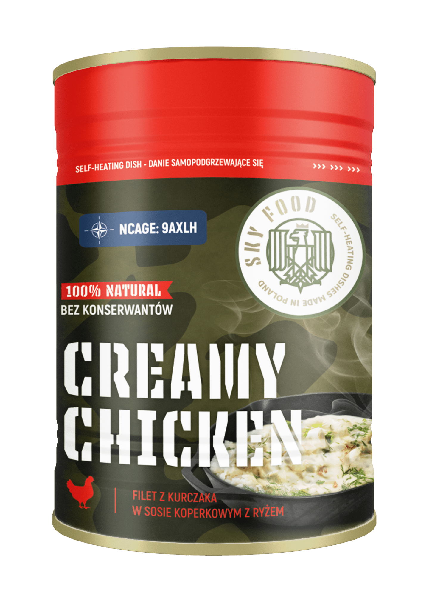 water, chicken fillet 29%, cream (from milk), rice 5.4%, carrot 3.7%, wheat flour, celery 1.5%, parsley 1.5%, salt, white pepper, dried dill 0.1%. May contain: mustard, soy.